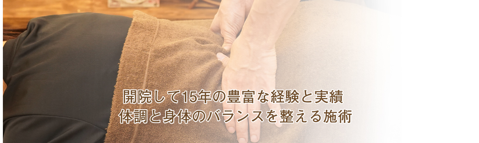 当院は開院して15年の豊富な経験と技術があります。お客さまの体調と身体のバランスを整える為に今できる最高の技術と知識を提供いたします。